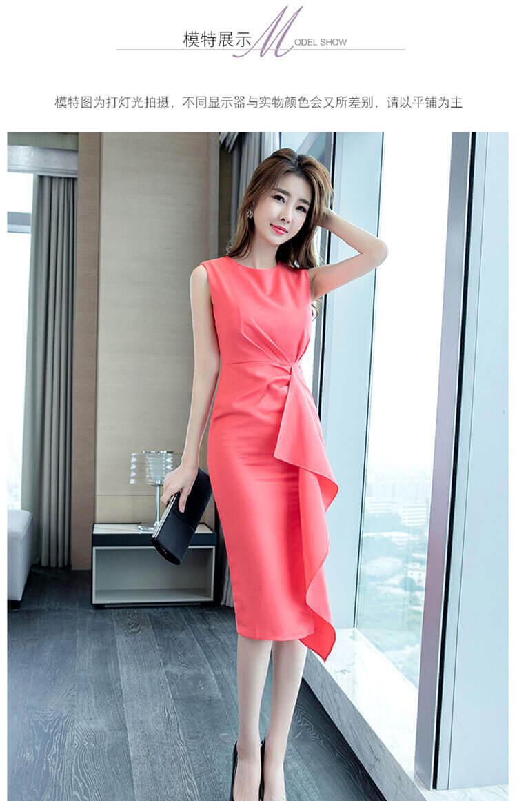 SHIROMA 香港潮牌夏天显瘦长裙性感女装气质女神范衣服收腰修身包臀礼服无袖连衣裙 西瓜红 S
